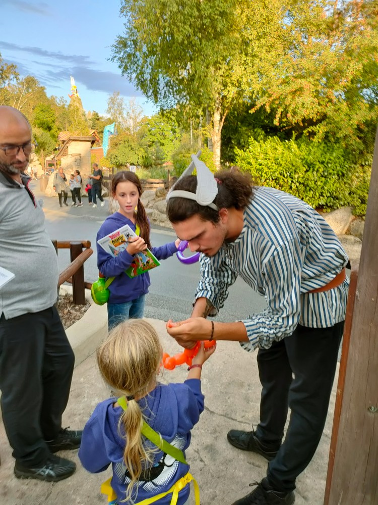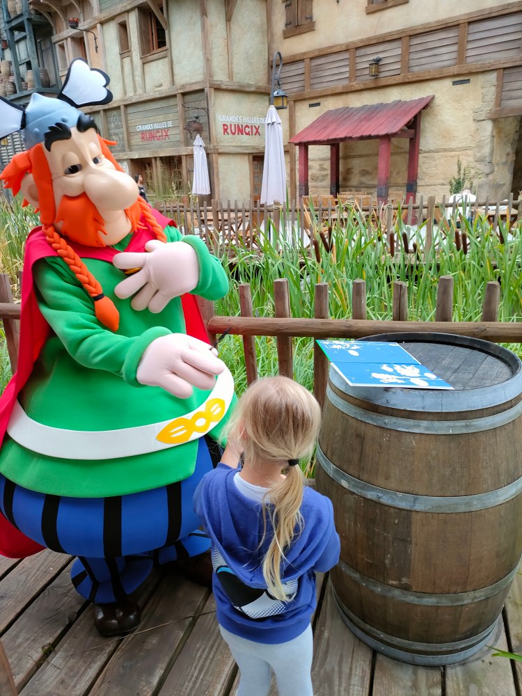 Nous avons eu la chance dingue d’avoir très peu de monde sur le Parc, les temps d’attentes dépassaient rarement la demi-heure (et encore ça c’était pour las attractions à sensation les plus prisées comme le Menhir Express qu’on ne pouvait pas faire en avant première, déjà, pas ouvert et en plus, on risquait de passer la journée trempés, non merci !).