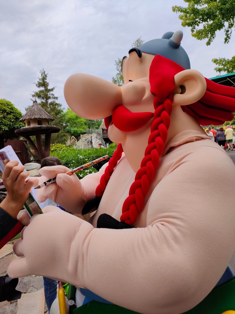 Les personnages sont supers accessibles, et à part Astérix et Obélix qui sont assignés à résidence avec un photographe, les autres se baladent librement dans « le village gaulois » et se prêtent volontiers au jeu des photos/câlins et même des dédicasses …