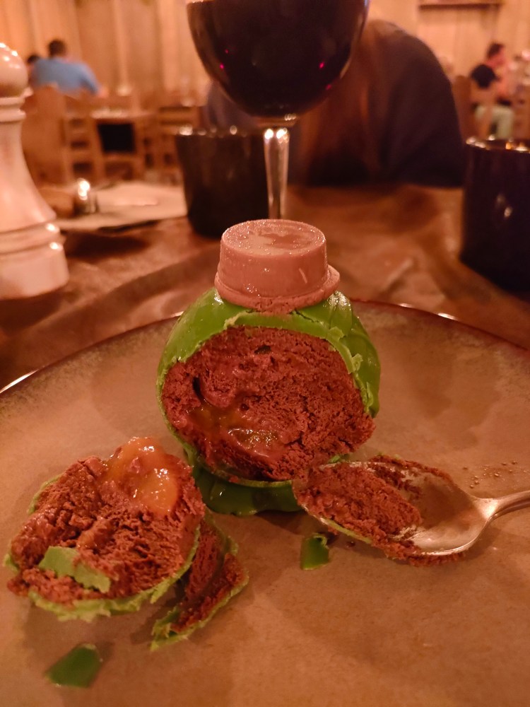 Mention spéciale pour le dessert en forme de potion magique, à base de fruits et de chocolat, sans gluglu et une dinguerie en goût !