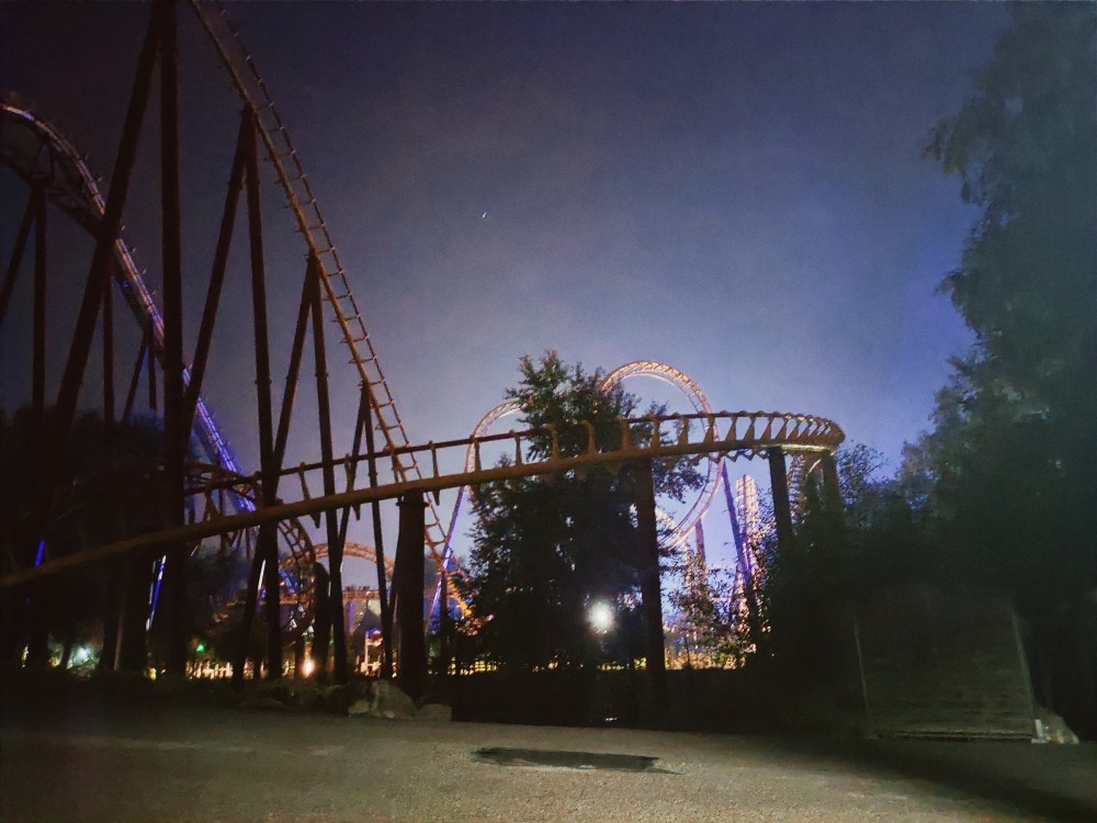 *Allez je vais vous dire pourquoi je ne l’ai pas aimé, rien à voir avec le petit twist de fin de parcours, au contraire j’ai trouvé ça génial, mais les wagons sont vieux, et donc étroits, et j’ai pris beaucoup de poids donc, déjà j’étais pas à l’aise. Ensuite les rails sont « nus », pas de barrière de part et d’autre, paye ton vertige, du coup j’ai eu l’impression qu’à chaque secousse j’allais voltiger dans les airs.